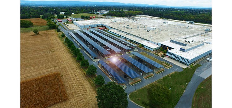 In 2015, the Hagerstown site partnered with ConEdison Solutions and Entropy Solar Integrators on the design and installation of a 5,000-panel solar canopy, which is among the largest on the U.S. east coast. Covering the plant's entire north parking lot, the solar canopy generates 1.3 megawatts of electricity that is delivered directly to the facility, helping to offset the plant's electrical demand.