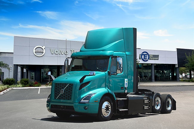 CAPTION: TEC Equipment’s two Southern California dealerships are well located to service fleet operators involved in local and regional goods movement, particularly around the ports — an ideal application for the Volvo VNR Electric Class 8 model.