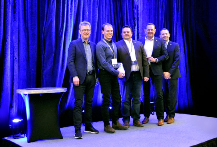 CAPTION: Gerry’s Truck Centre accepts the Volvo Trucks North America 2024 Canadian Dealer Group of the Year award. Pictured L-R - Roger Alm, president, Volvo Trucks; Mike Wardle, dealer principal, Gerry’s Truck Centre; Doug Wardle, sales manager, Gerry’s Truck Centre; Peter Voorhoeve, president, Volvo Trucks North America; and Matthew Blackman, managing director, Canada, Volvo Trucks North America.