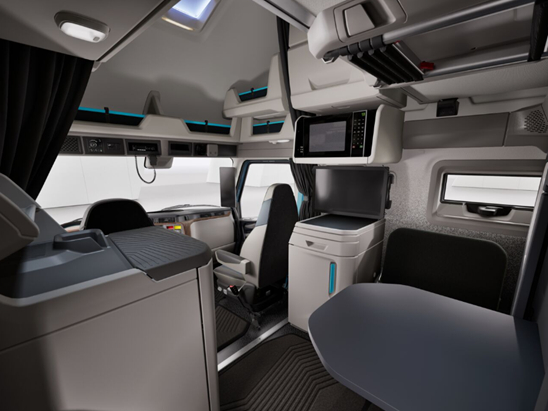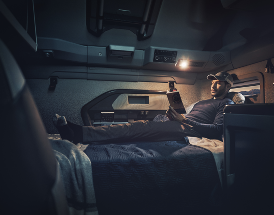 Inside, Volvo Trucks reimagined every detail of the driver’s environment. Ergonomic seating, optimized pedal positions, and intuitive controls create a driver-focused command center. The airline-inspired lighting, overlapping blackout curtains with magnetic seals, optional thermal barriers, and folding bunks make life on the road feel effortless. Meanwhile, upgraded insulation, enhanced storage, and premium materials make long hours on the road more comfortable, restful, and connected.