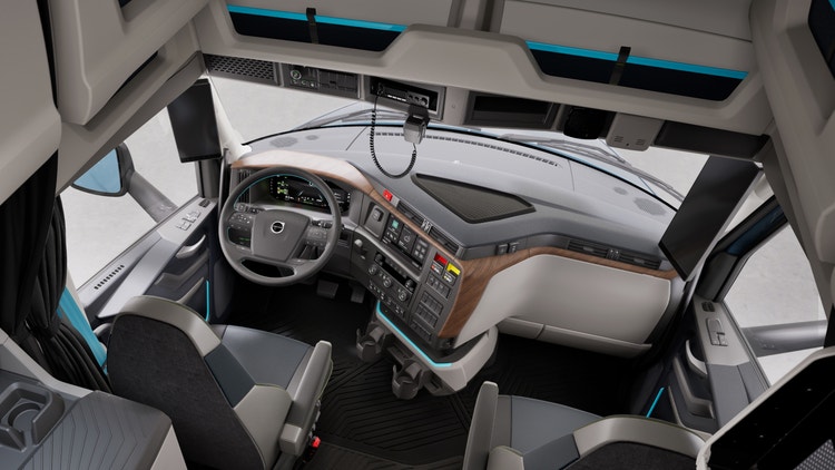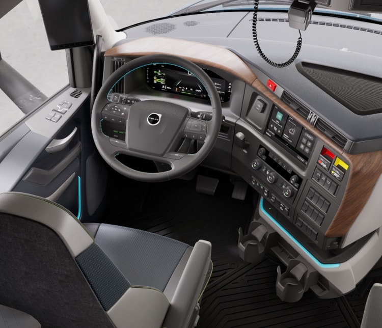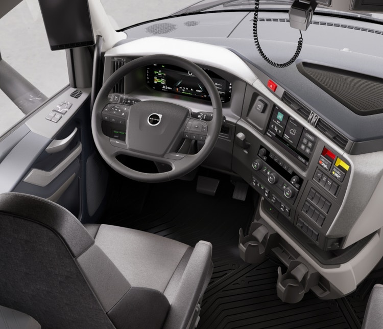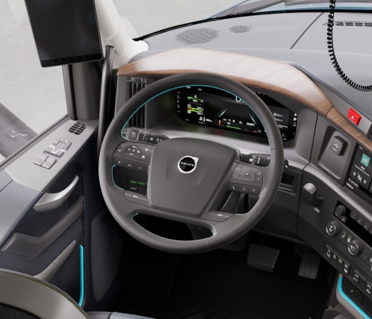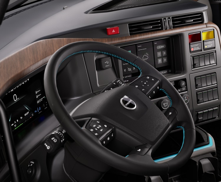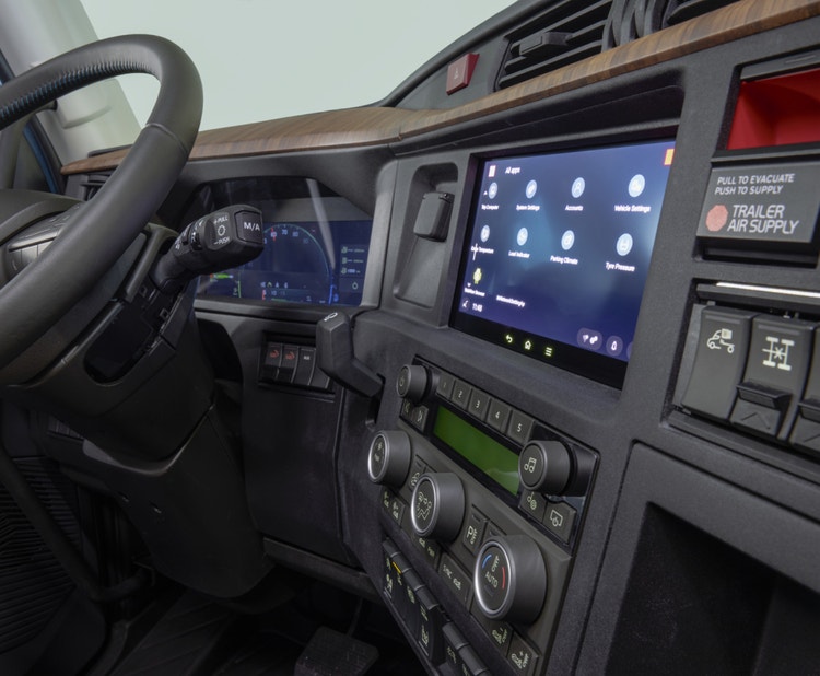 Digital gauges, including suspension loading, axle interlock, and I-Shift transmission oil levels keep focus forward. Navigation, multi-camera, and backup camera views can also be integrated with the Infotainment Center.