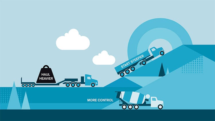 When startability and maneuverability are critical, the I-Shift with crawler gears offers the highest weight capacity in an automated manual transmission. It enables controlled forward and reverse travel at extremely slow speeds.